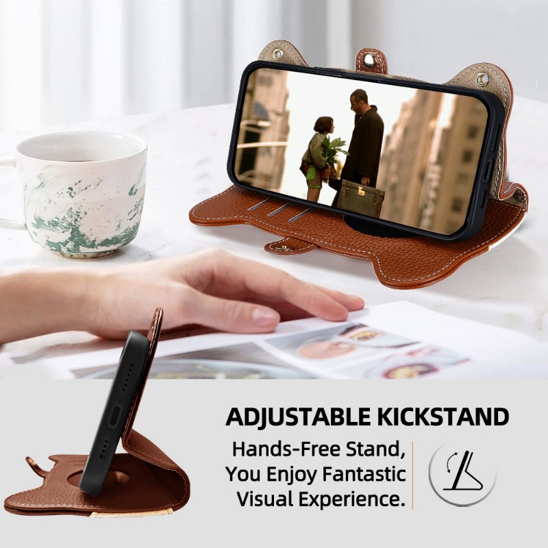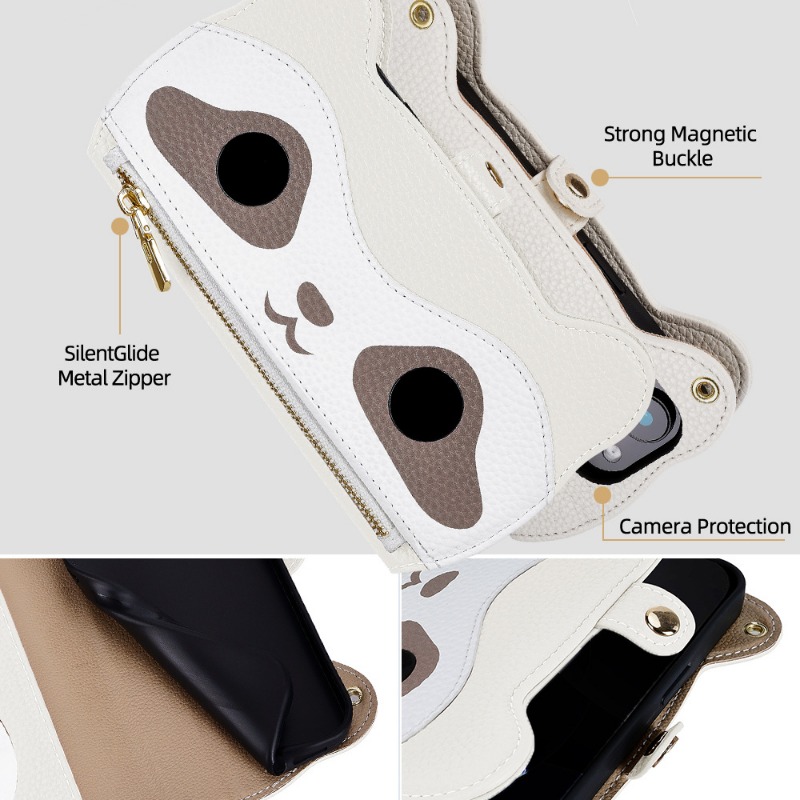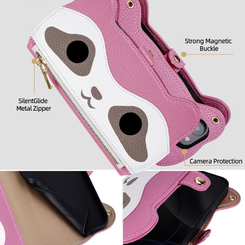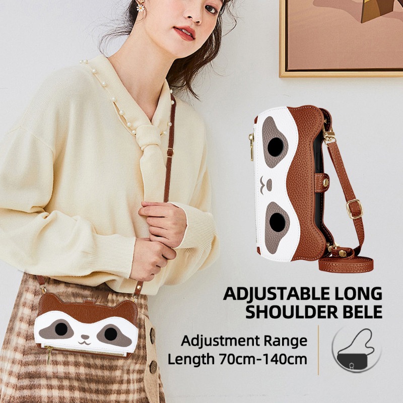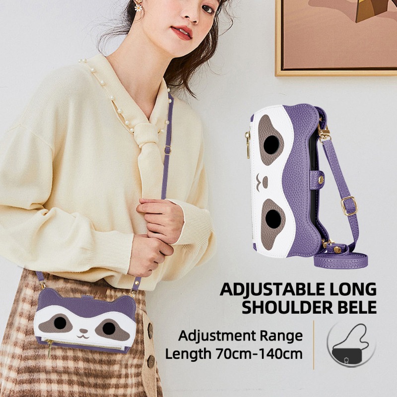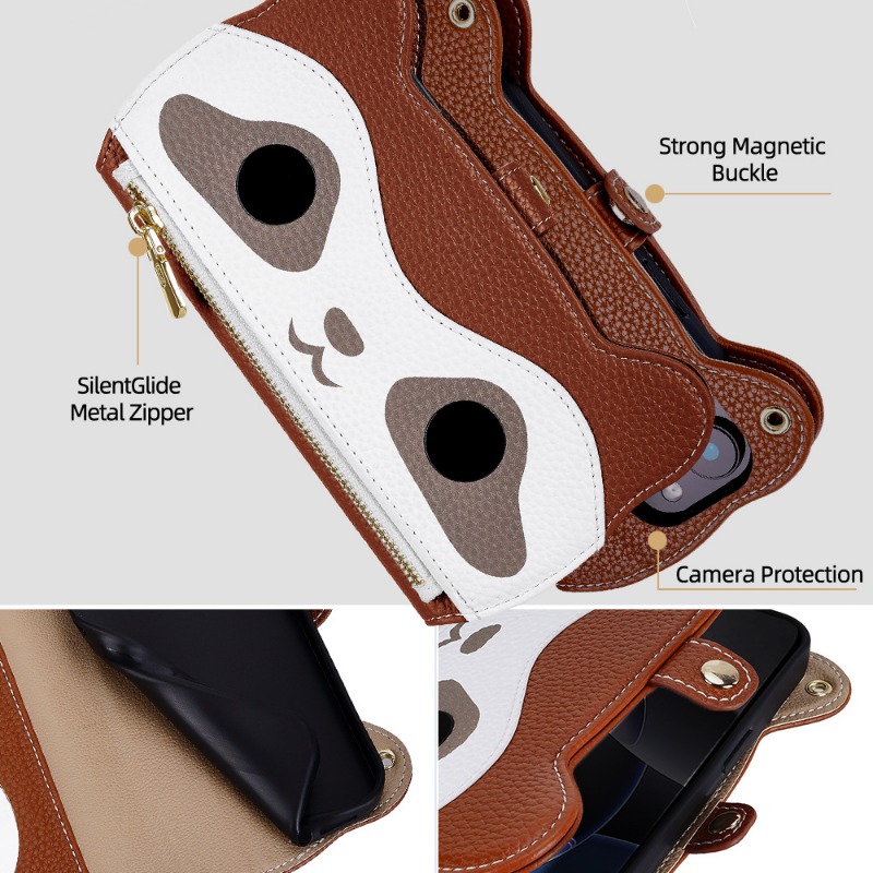 Cute Raccoon Leather Cross-Body Wallet Phone Case For IPhone